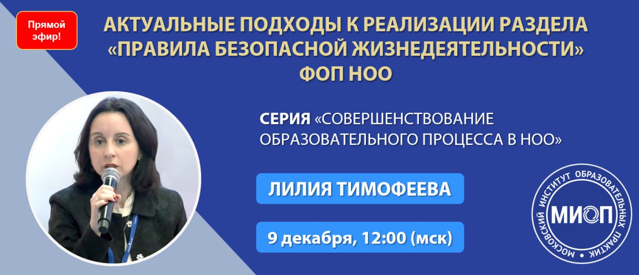 9 декабря в 12:00 (мск) приглашаем вас принять участие в вебинаре «Актуальные подходы к реализации раздела «Правила безопасной жизнедеятельности» ФОП НОО» (https://obr.nd.ru/events/272). В фокусе вебинара – анализ проблем образования в области безопасности жизнедеятельности и путей их преодоления.