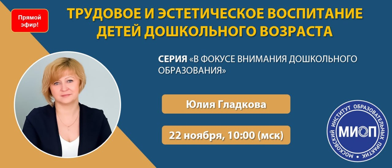 🎤 Спикер – Гладкова Юлия Андреевна, заведующая кафедрой дошкольного образования КУРО, ведущий научный сотрудник лаборатории развития дошкольного образования ФГБНУ «ИРЗАР», кандидат педагогических наук, доцент; член экспертного совета ВОО «Воспитатели России», эксперт федерального портала цифровой среды ДПО Министерства просвещения РФ, член-корреспондент МАНПО, почетный работник общего образования РФ.