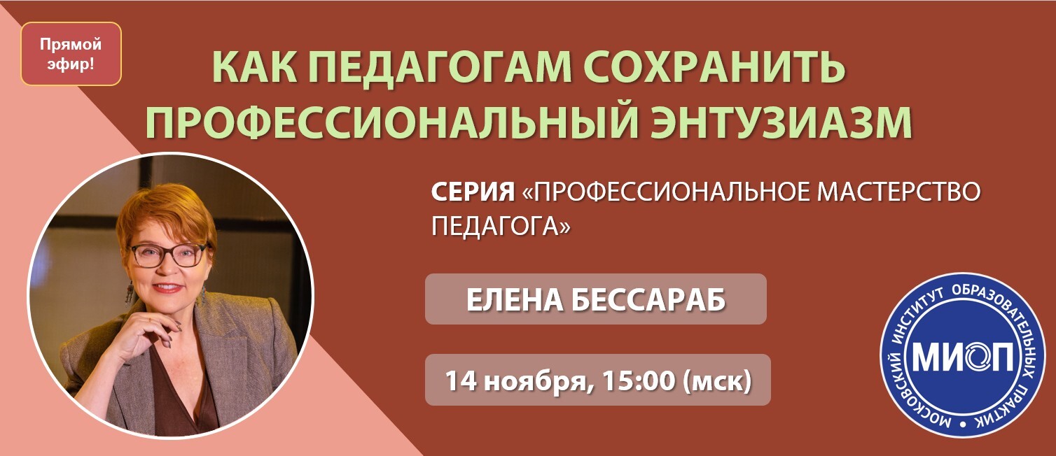 #ВебинарДляПедагогов #ЭмоциональноеВыгорание #ПрофессиональныйЭнтузиазм #Педагогика #Учитель #Самопомощь #Самоподдержка #Образование #14ноября #Методист #ПовышениеКвалификации #АНОДПО #МосковскийИнститутОбразовательныхПрактик #Бессараб