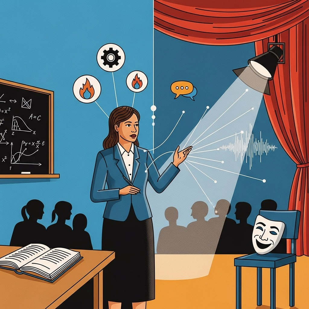 В этот момент важно понять: возможно, проблема не в что, а в как. Не в содержании, а в его подаче. Учитель у доски — не просто транслятор знаний. Он — режиссёр, который выстраивает мизансцены внимания. Сценарист, который пишет сюжет урока прямо на ходу. Артист, чьи жесты, интонация и энергия — такой же учебный материал, как параграф в учебнике.