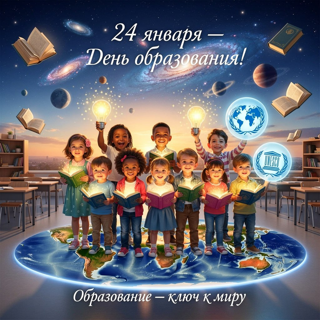 Друзья, сегодня весь мир празднует ключ к миру и прогрессу! ООН учредила этот день в 2018 году, чтобы напомнить: качественное образование — это не роскошь, а право каждого ребёнка, общественное благо и фундамент устойчивого будущего.